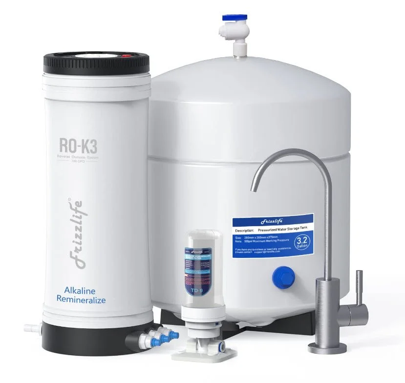 I ordered the Frizzlife Reverse Osmosis machine, and it has been one of the best investments we have done. The water tastes pure, clean, and vibrant.  I highly recommend this tank RO system.  I also got Robert's John Ellis Water Machine Consulting package, which is a must for anyone getting a John Ellis Living Water Machine. Robert is highly knowledgeable, patient, and a great teacher, and he offers you details about the installation that would otherwise be hard to find. If you look in the image below, he even made us a custom water adapter to be able to connect the RO clean water faucet to the input water line on the John Ellis Water Machine. I highly recommend his consulting package.